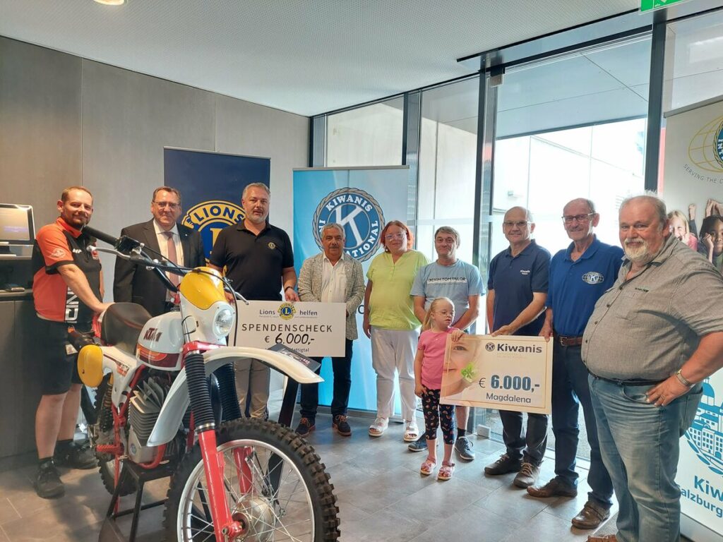 Die Firma KTM AG hat gemeinsam mit dem KC Mattighofen und dem KC Salzburg-Rupertus eine finanzielle Unterstützung in Höhe von 6.000 € an eine Familie aus Schalchen übergeben. Dazu kommen weitere 6.000 € des Lions Club Mattigtal aus dem Erlös des Gstanzlsingens und Militärmusik-Konzerts.