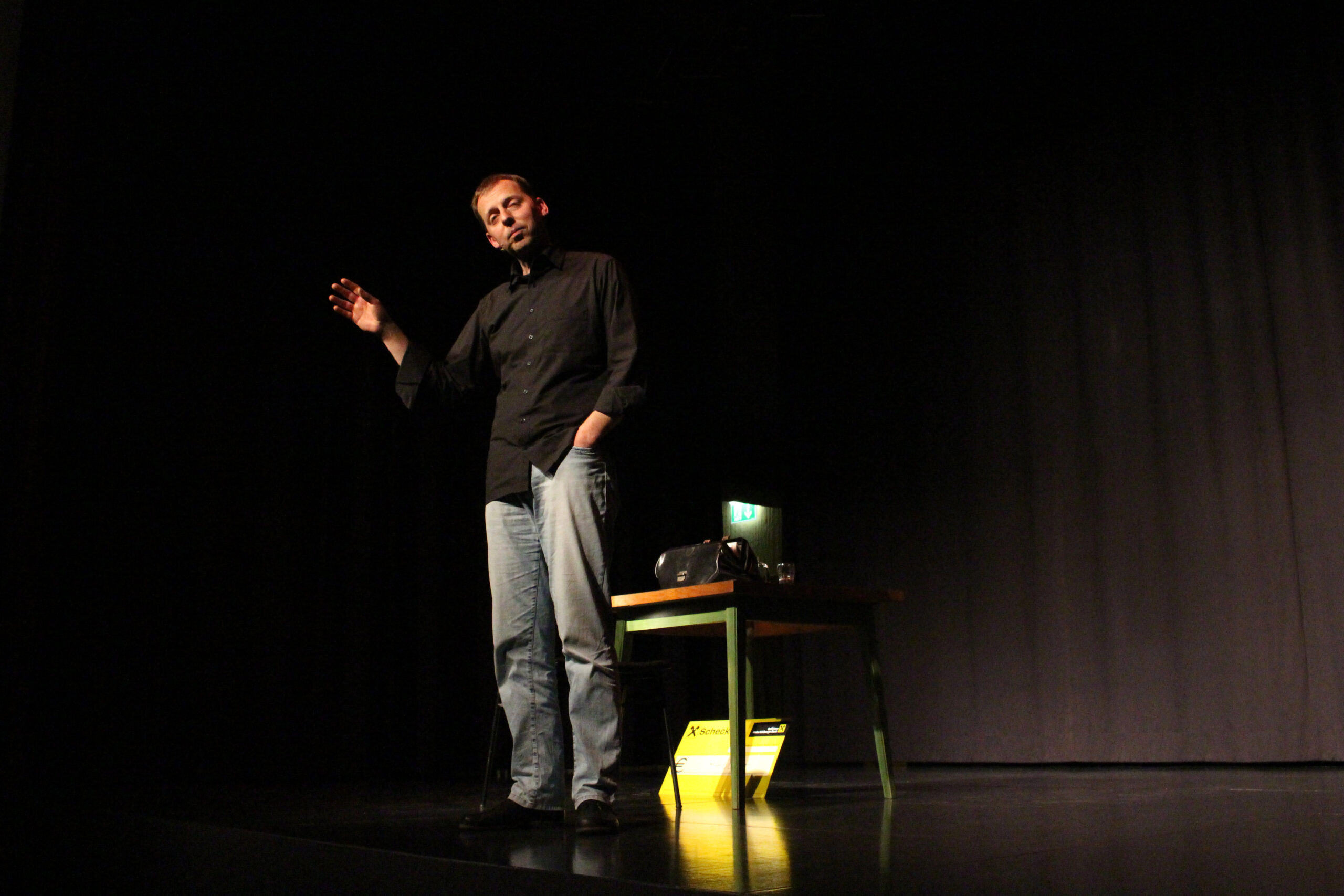 All das bringt Ingo Vogl nicht mit dem erhobenen Zeigefinger, sondern erzählt es locker seinem Publikum. Zwischendurch spielt er auch ein Blutgefäß oder den jungen Ingo, der beim Posen vor dem Spiegel erkennt, dass man ihn wohl „wegen seiner inneren Werte lieben wird“. Zum Schluß kommt dann auch noch Marcel Reich-Ranicki – unverkennbar – zu Wort.