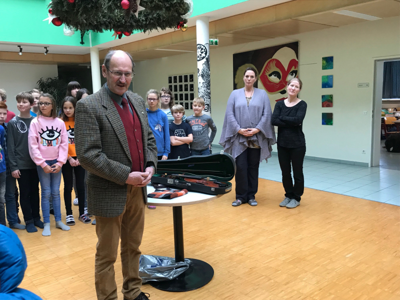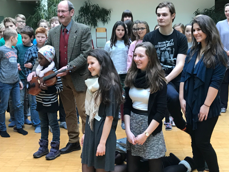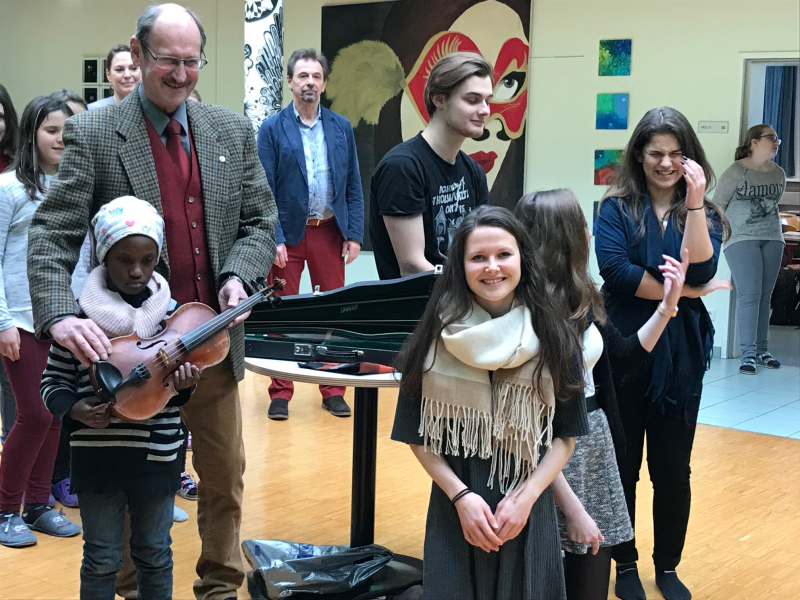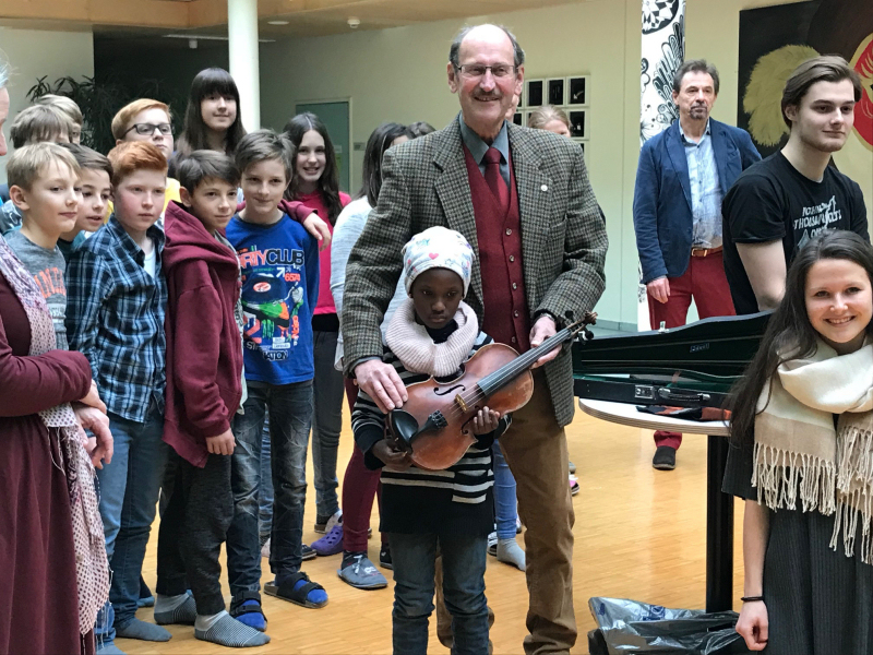 Präsident Helmut Riedl überreichte Divine eine Geige aus seinem Familienbesitz. „Die Geige ist schon über 100 Jahre alt, ich selbst habe sie als Zehnjähriger von meiner Mutter bekommen“, erinnert sich Präsident Riedl.